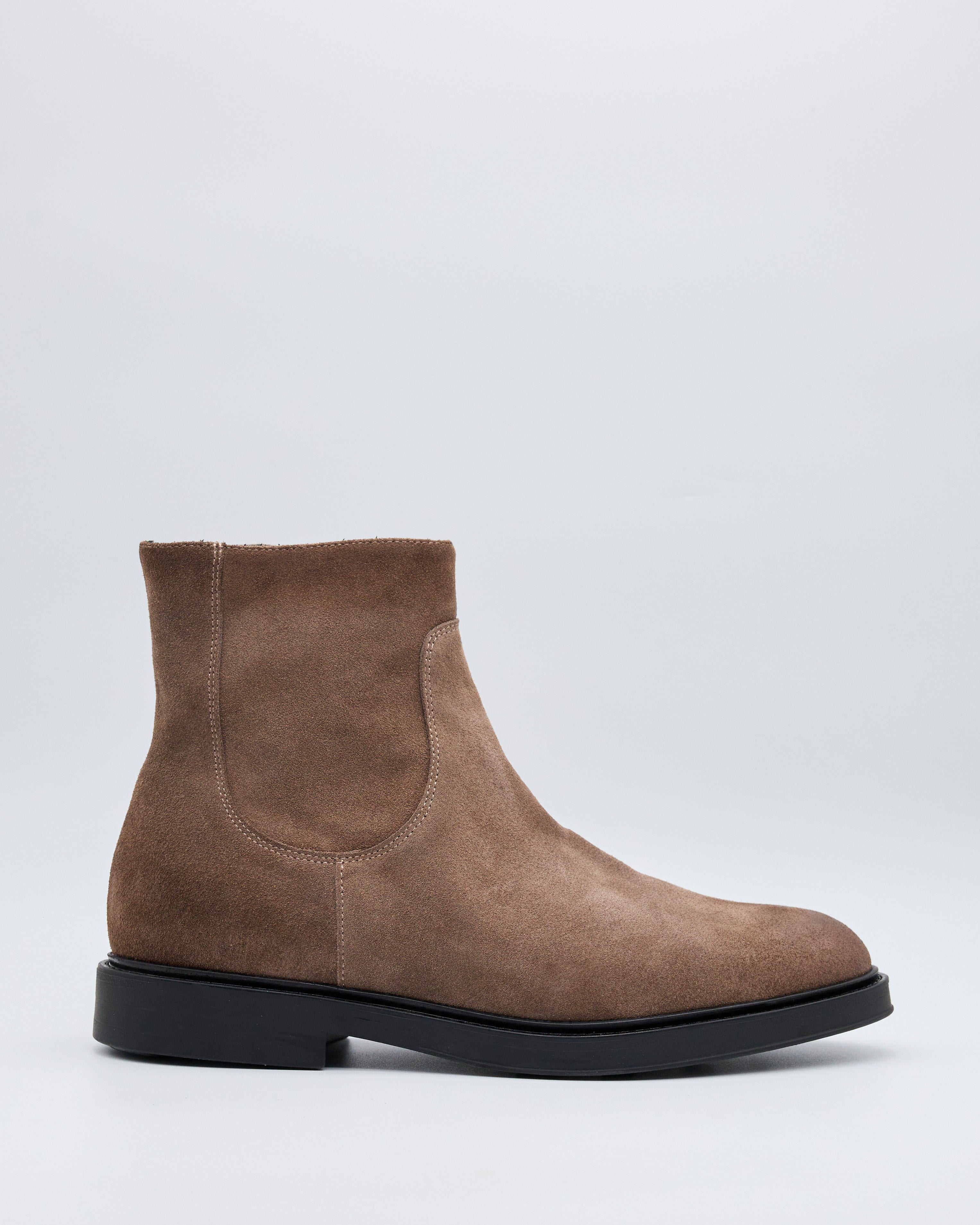 Stivaletto in Camoscio Taupe con Zip Laterale
